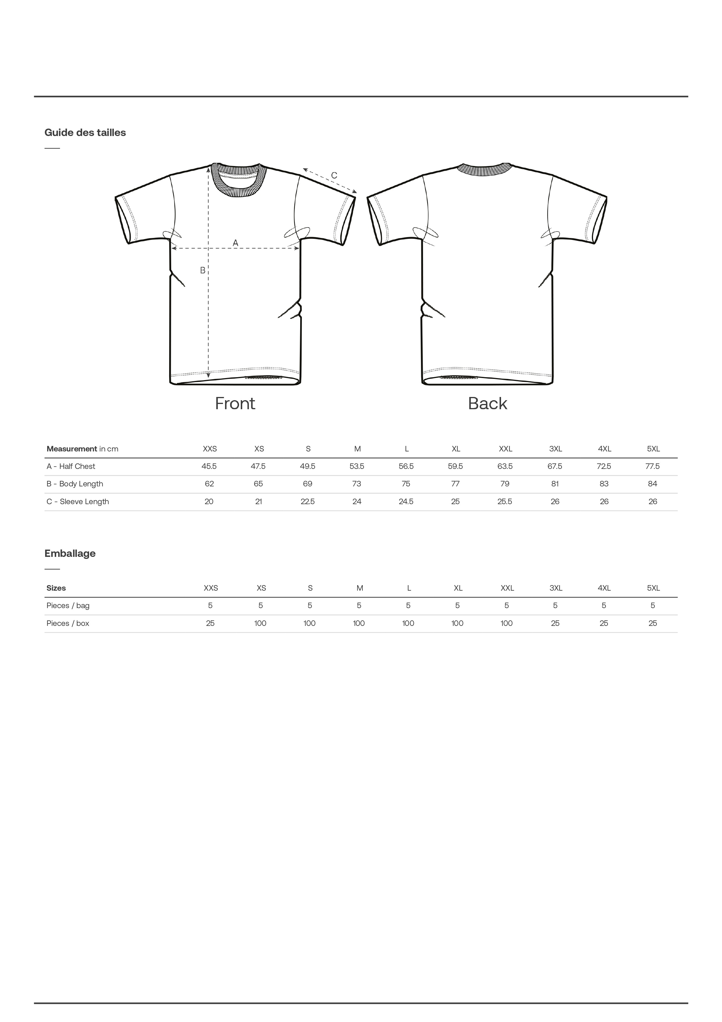 Guide des taillesTailles disponibles